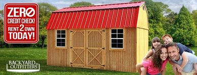 It's easy to get into a great quality custom building! For those customers with the money needed to buy our barn outright, buying is a simple transaction. For our customers who either don’t want to pay cash or can’t afford to pay cash for a backyard barn, we make it easy to get into a Rent-To-Own shed. Besides very easy pricing, one major advantage of our rent-to-own program is that Backyard Outfitters does not affect your credit rating at all. With NO Credit Checks, all you have to do is pay a small security deposit plus the first month’s rent, and we’ll deliver a building to your location (if within 30 miles of a dealer.) From then on, you pay monthly rent for 36 OR 48 months and the building is yours! In addition, you can pay the building off at any time with no pre-prepayment penalty. You won’t find a cheaper or more attainable Rent-to-Own plan anywhere. The rent-to-own rental agreement is on a month to month basis, meaning you have the flexibility to turn in the building at anytime for any reason. (*after the initial period of 1–4 months.) Call us for details.